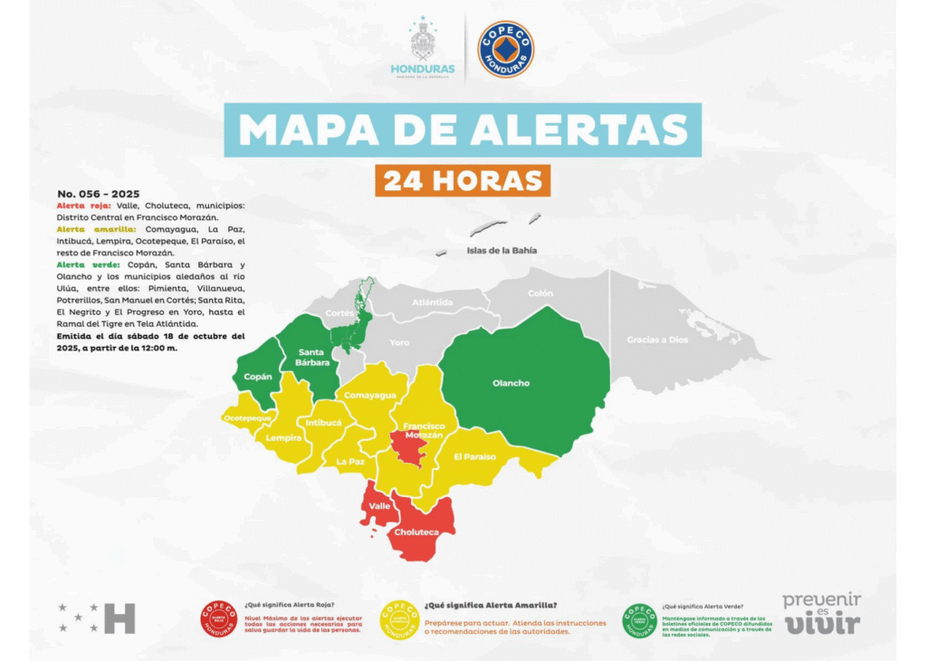 Ante esta situación, Copeco mantiene alerta amarilla en varios departamentos y las autoridades locales trabajan en acciones de evacuación preventiva, limpieza de cauces, reparación de infraestructura crítica y entrega de ayuda a las comunidades más afectadas.