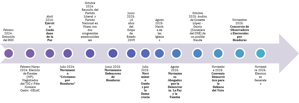 En vísperas del aniversario del golpe de Estado de 2009, resurgieron personajes clave de aquel episodio, ahora bajo el nombre “Defensores de Honduras”. Su mensaje se centraba en rechazar “la injerencia del socialismo del siglo XXI” y en “defender” las elecciones de noviembre de 2025.