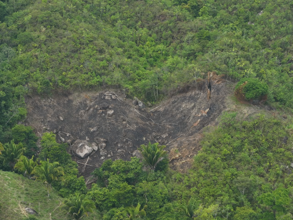 Asimismo el ente estatal, informó que durante un patrullaje el equipo logró ingresar al área, y mediante sobrevuelos con dron identificó varios polígonos con cambio de uso de suelo, descombros y zonas afectadas por incendios.